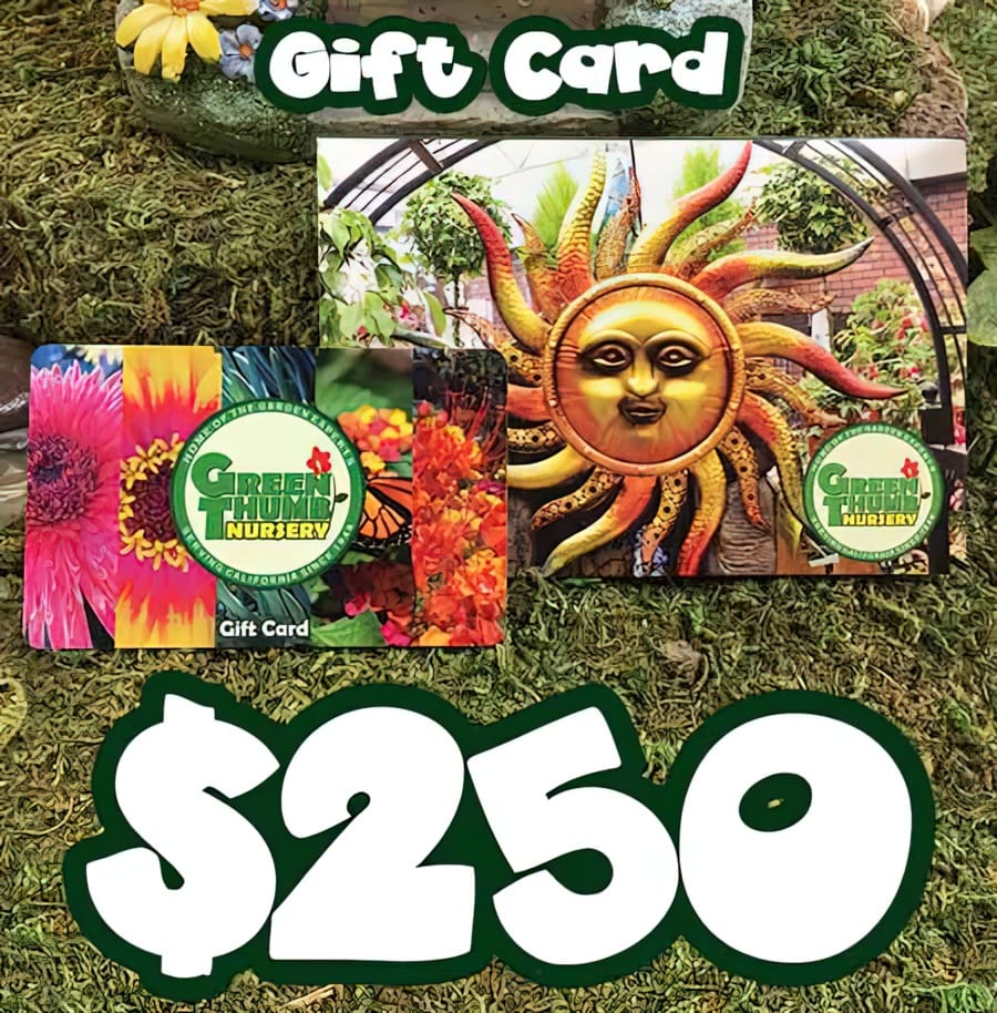 A physically mailed $250 gift card which can be used in-store only at any of our Green Thumb Nursery locations.